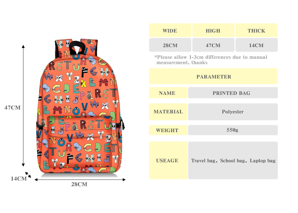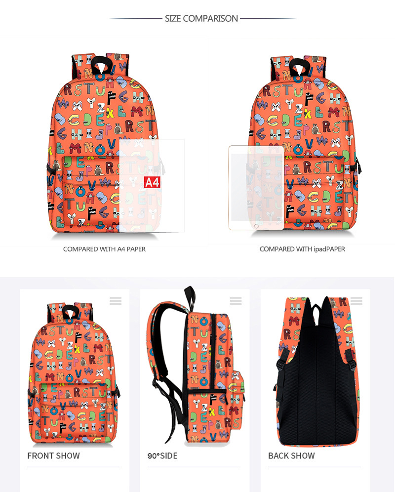 Alphabetic Full Printed Backpack Schoolbag Travel Notebook Bag for Kids Students