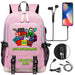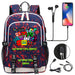 Geometry Dash USB Charging Backpack School Note Book Laptop Travel Bags